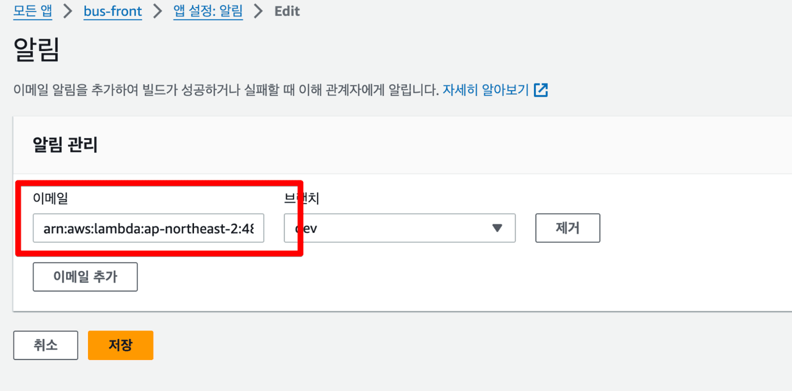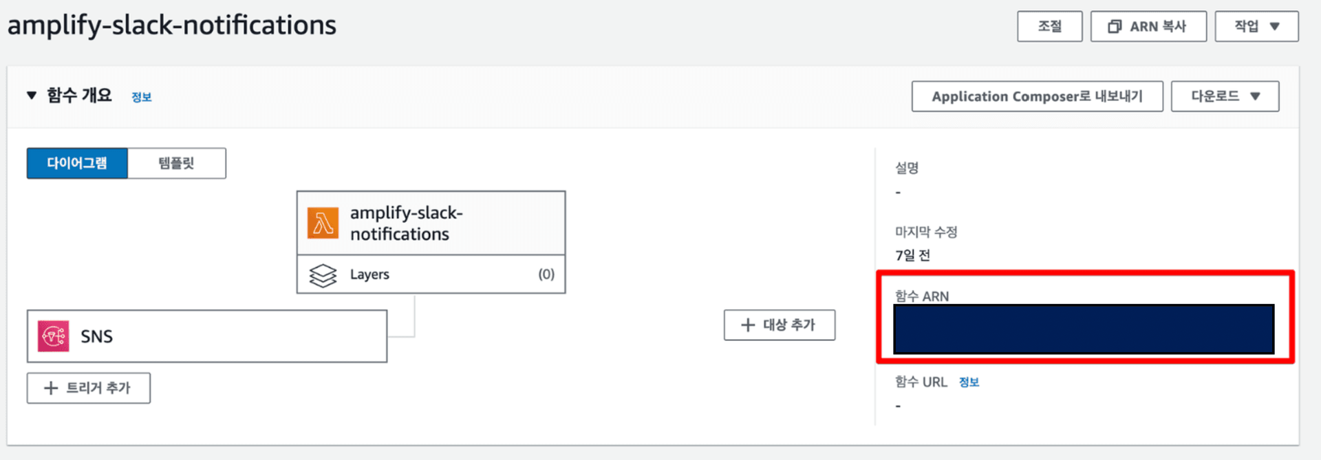 SNS를 트리거로 추가하면, SNS Topic은 Amplify에 이메일 알림을 추가했을 때 자동 생성된 항목을 선택합니다.