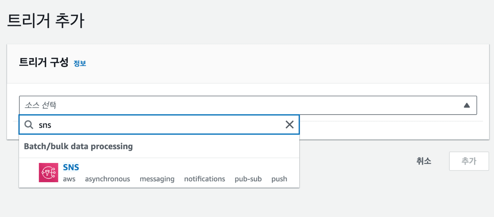 SNS 항목을 선택해 추가합니다.