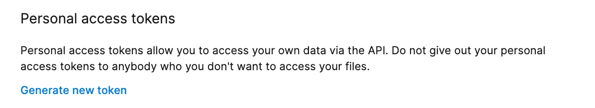2. Figma에 들어가서 프로필 클릭 후 Settings에 들어간 다음 Security탭의 하위에 있는 Personal Access Token 영역에서 Generate new token을 눌러 새로운 토큰을 발급 받으세요.