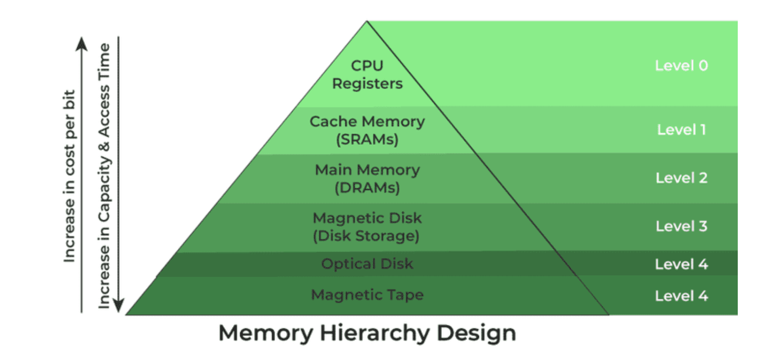 출처 : https://www.geeksforgeeks.org/memory-hierarchy-design-and-its-characteristics/