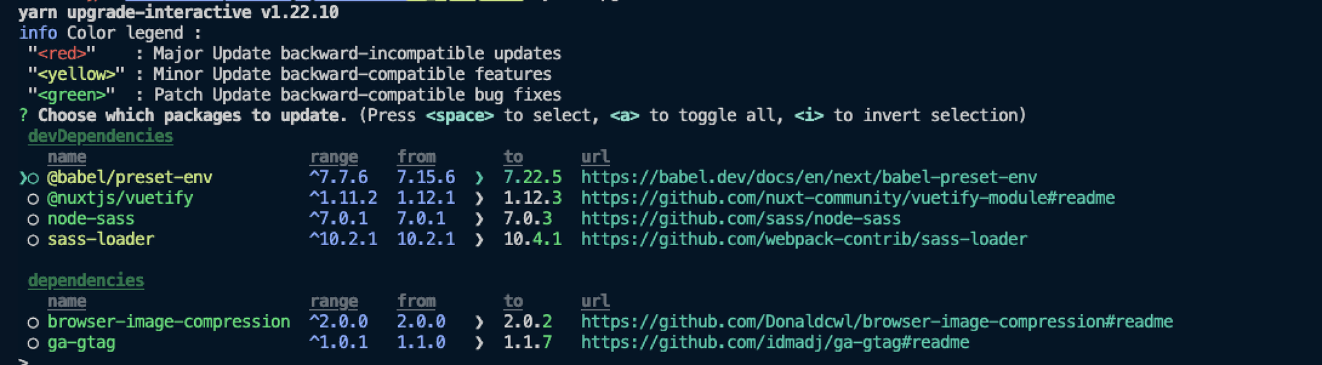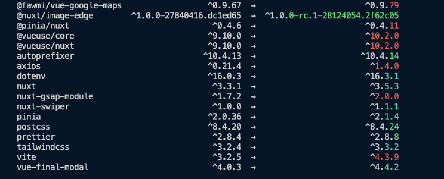 //💡 예외 처리된 패키지의 마이너 업데이트를 진행하려면 ncu -i -t minor 입력//현재 프로젝트에서 사용중인 패키지들의 목록을 보여줌