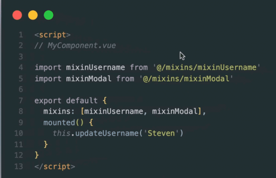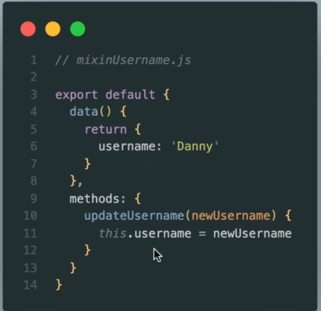 위의 경우 updateUsername이 어떤 mixin에서 가져오는지 불명확합니다.